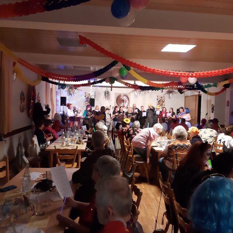 Mit unserer Närrische Singstunde startet die närrisches Jahreszeit in unserem Verein. Mit viel liebe und Humor gestalten unsere Akteure das bunte Programm mit Gesang, Tanz und Sketchen.