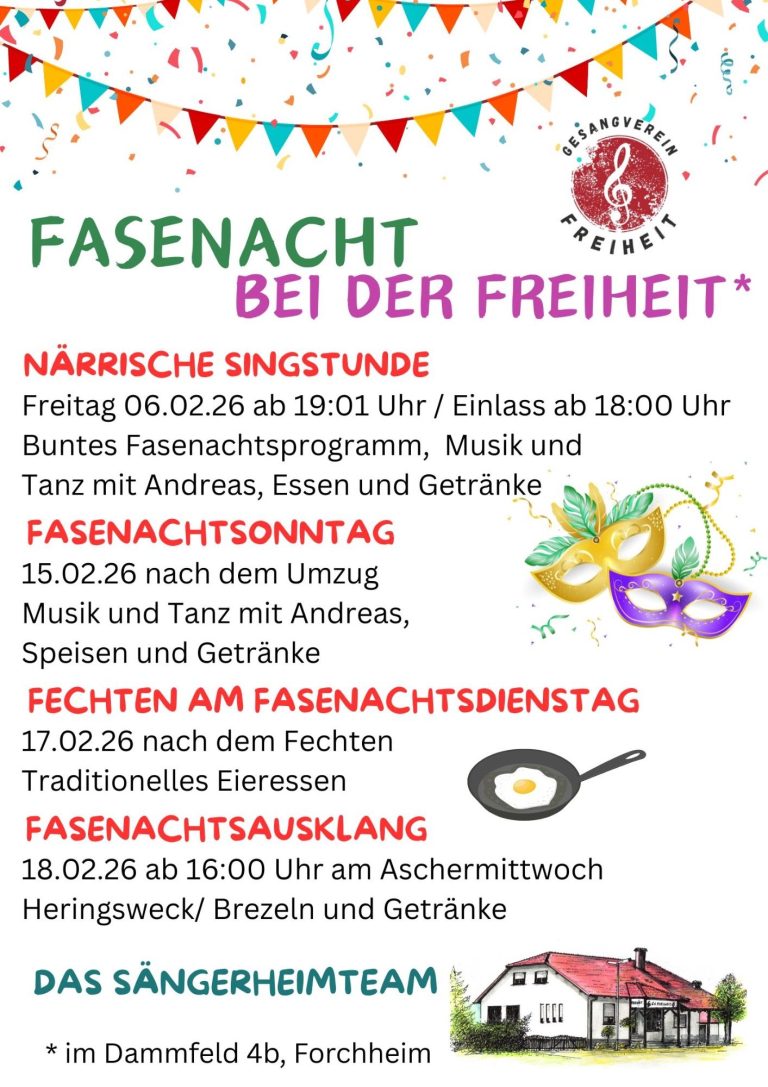 Am 06.02.26 ab 19:00 Uhr ist es wieder so weit, besucht uns bei unserer Närrischen Singstunde im Sängerheim.